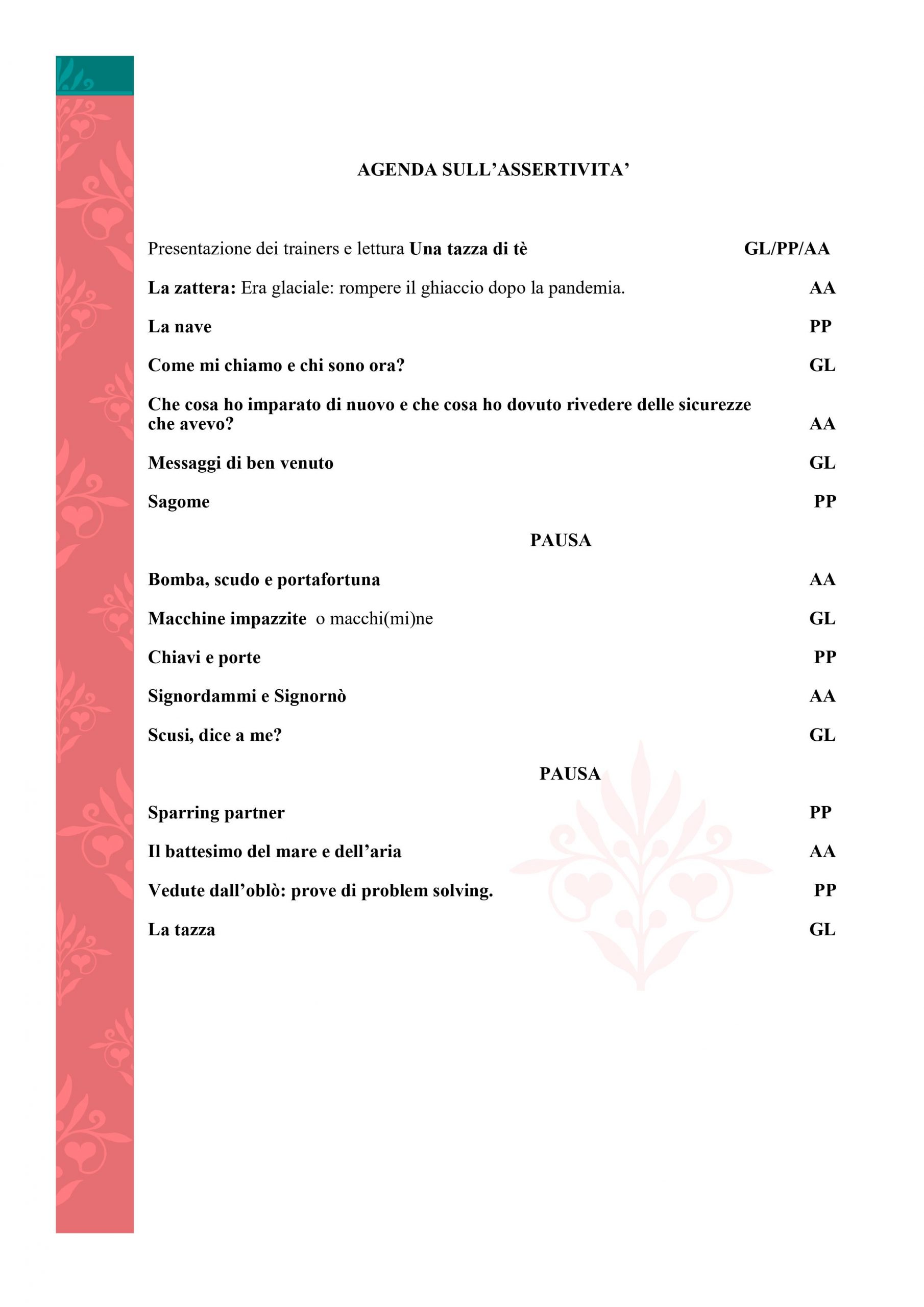 L’agenda del training sul tema dell’assertività