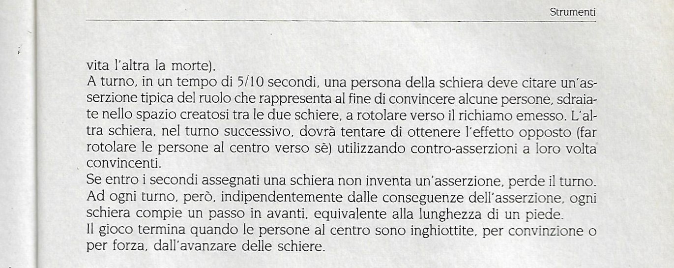 La sorte, sfogliando i nostri manuali di giochi, stavolta ci mette di fronte Schieramenti a richiamo (vedi sotto). Come se dall’oblò della nostra navicella spaziale la nostra attenzione venisse attratta dall’ennesimo fenomeno ignoto che esige una nostra presa di posizione. Il tutto simboleggiato da un gioco molto suggestivo, i cui scenari richiamano molto da vicino quello dei sonni agitati. In cui siamo combattuti, come Ulisse, tra richiami opposti: quello delle sirene, da un lato, e quello della fedeltà alla meta e ai propri compagni di viaggio, dall’altro. Richiami su istanze opposte che sembrano brutalmente riportarci ad una realtà fatta di antinomie. Quelle il cui contrasto da svegli tendiamo a smorzare con la messa a fuoco di tutto ciò che sta in mezzo e che forse proprio perchè ricco di dettagli non costituisce polo a se stante.
