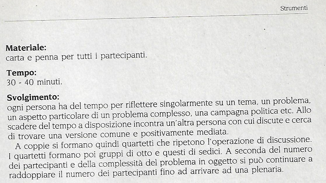 L’ esercizio due quattro otto propone un percorso per prendere le decisioni in modo consensuale, ossia all’ unanimità. Obiettivo che a prima vista sembra rendere ancora più probabile il rischio della paralisi del gruppo. Ma se si inquadra il gioco nella cornice della finalità del gruppo nelle campagne nonviolente appare chiara la vera funzione.