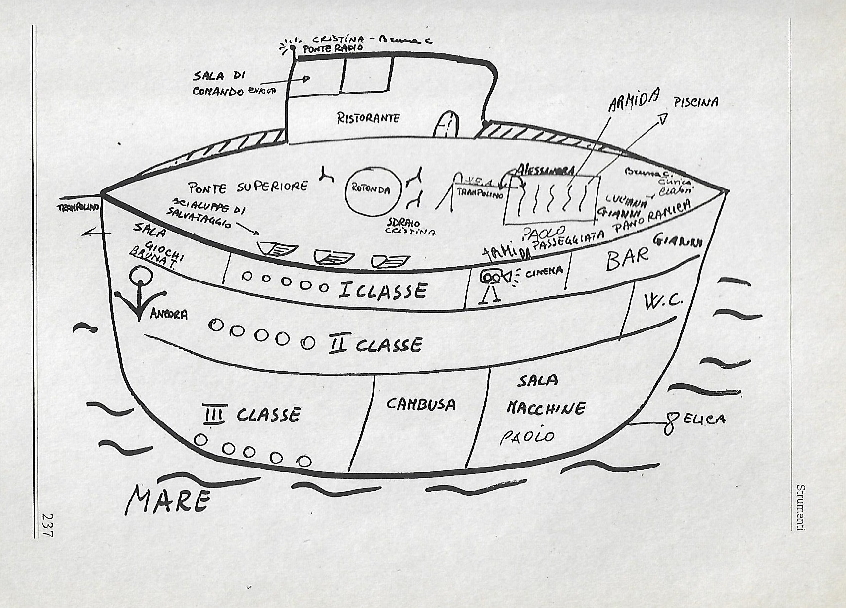Sembriamo stretti tra due tentazioni forti: vedere la barca come una nave (se non come l’Arca di Noè) oppure come la zattera del gioco omonimo di cui abbiamo parlato qualche tempo fa.