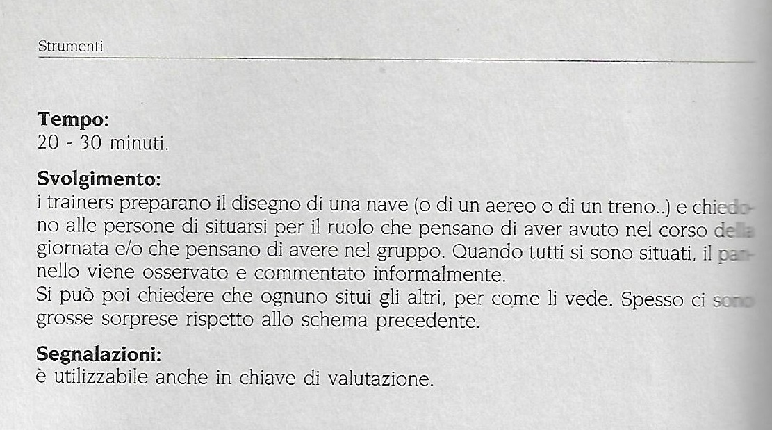 Nave, unitamente a ad altri strumenti dedicati alla rilevazione di tali aspetti (come la stessa finestra di Johary, ma pure il sociogramma), cerca di gettare luce su tale delicato versante dentro una cornice ludica. Nell’intento non tanto di stemperare la drammaticità della questione (un assertivo che si crede un leader, ma non è riconosciuto come tale dai colleghi, si dispiace per due minuti, ma subito dopo riprende a lavorare sodo su di se per ottenere l’obiettivo auspicato) ma per un altro fondamentale motivo.